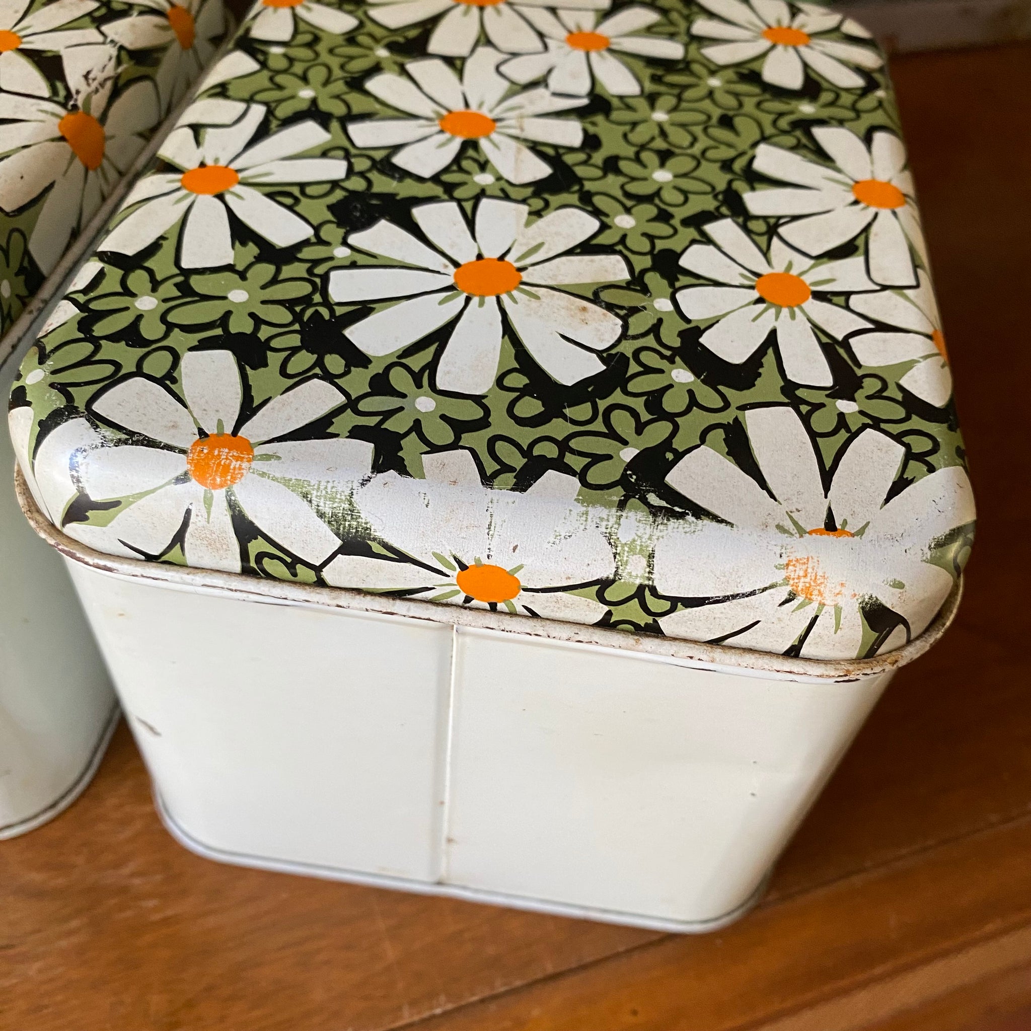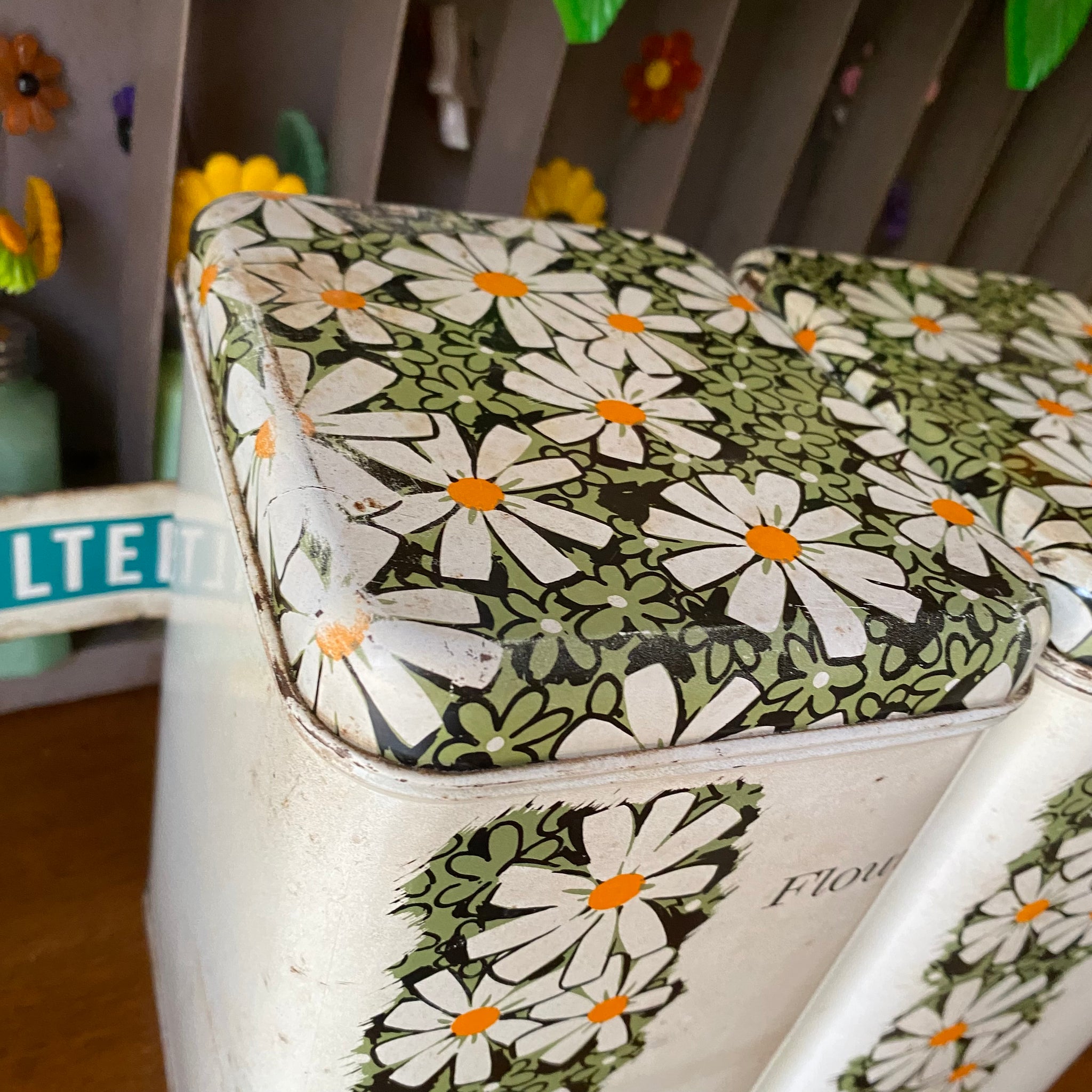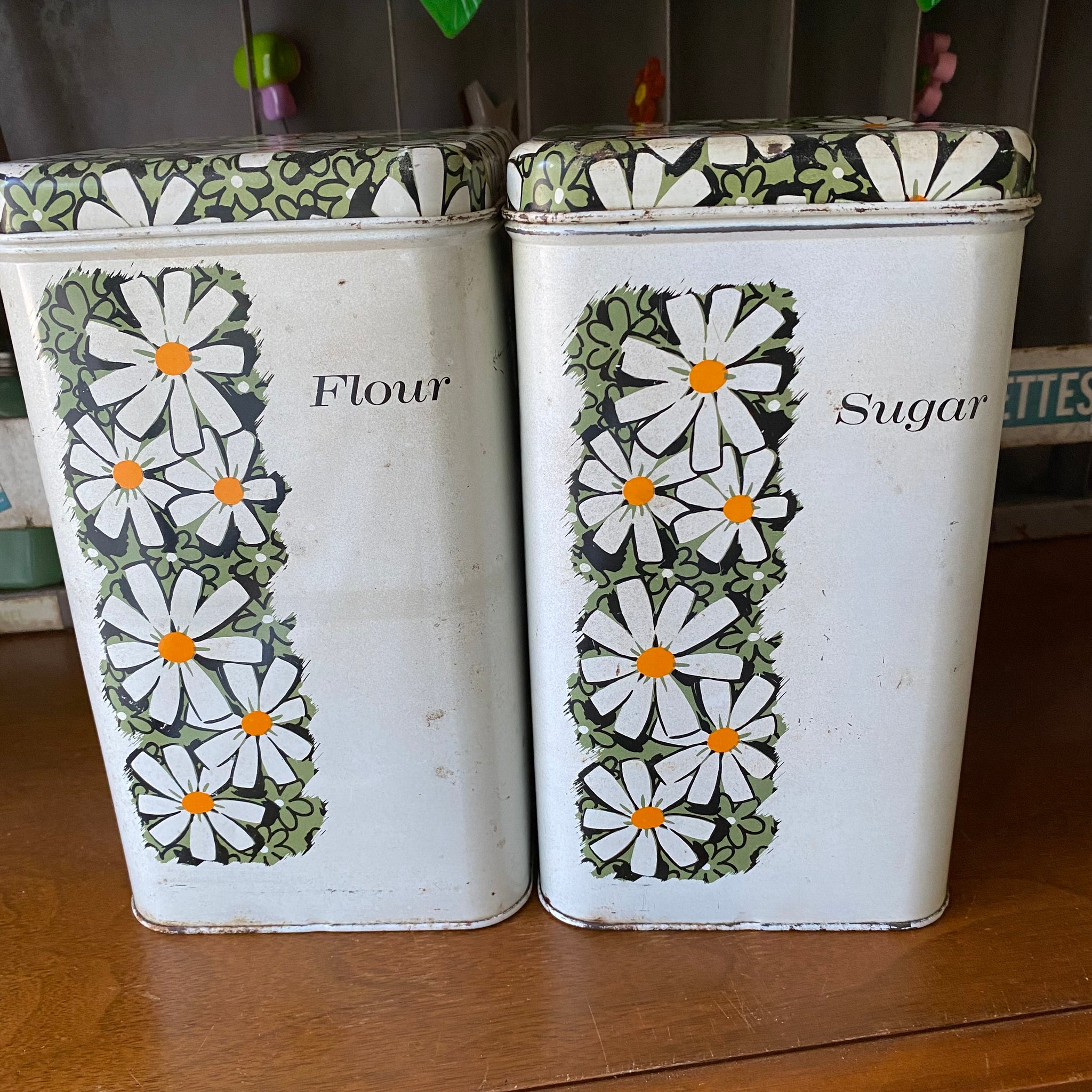 Full set of metal, Cheinco daisy pattern canisters!