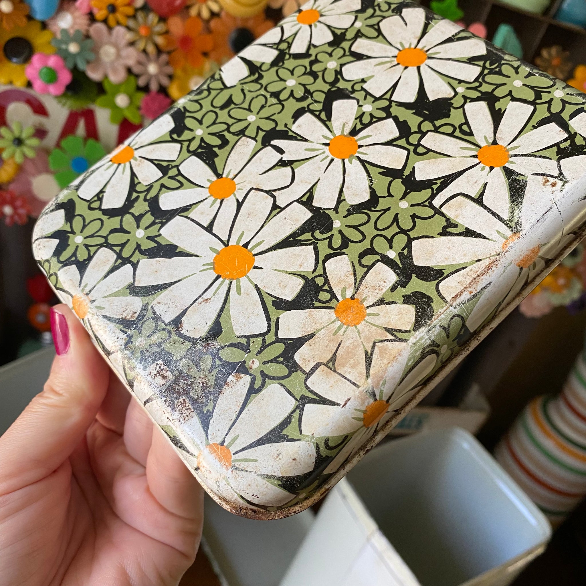 The painted tops have some wear to the daisy graphics but overall still look very good.