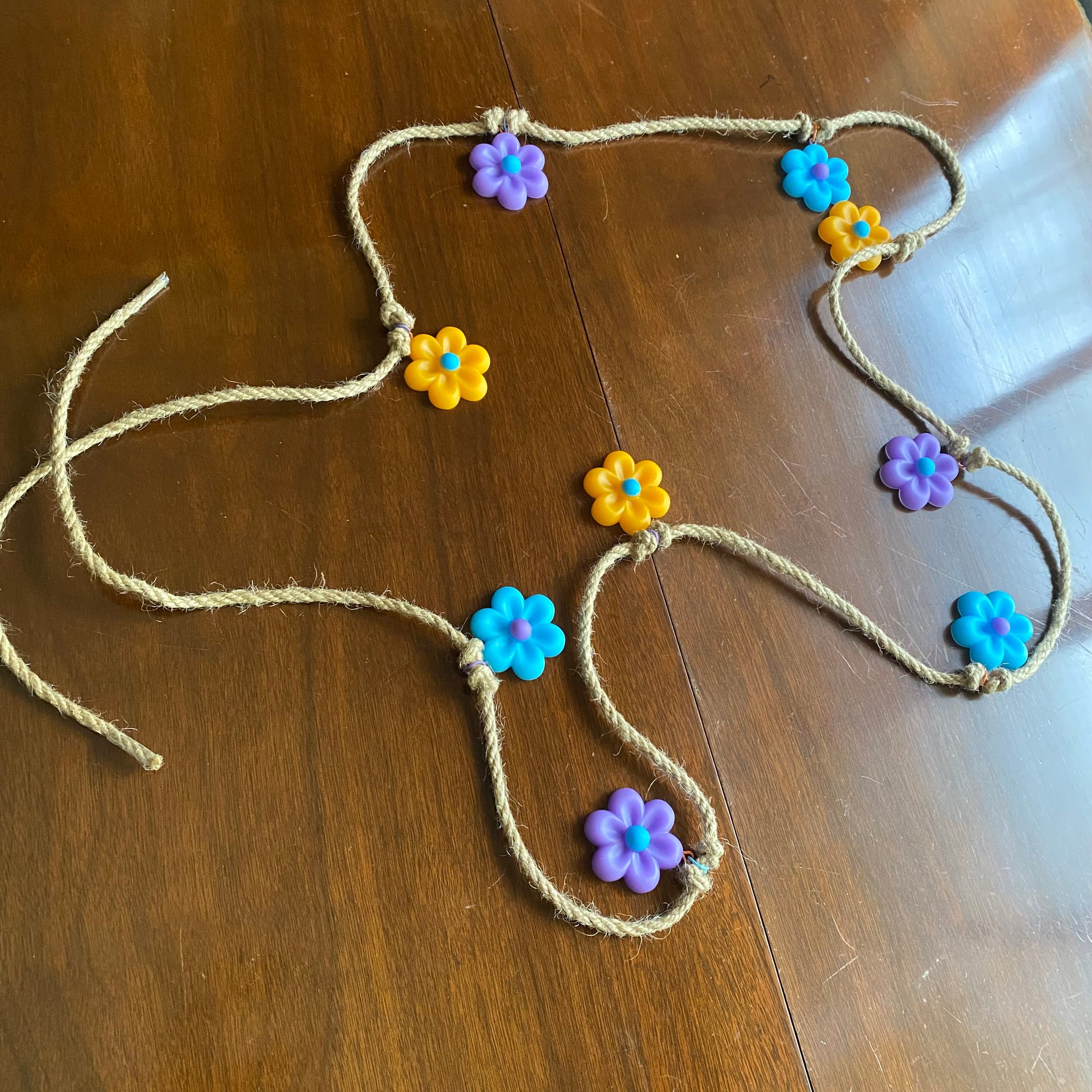 The jute rope is easy to trim or strip the charms and rearrange differently!