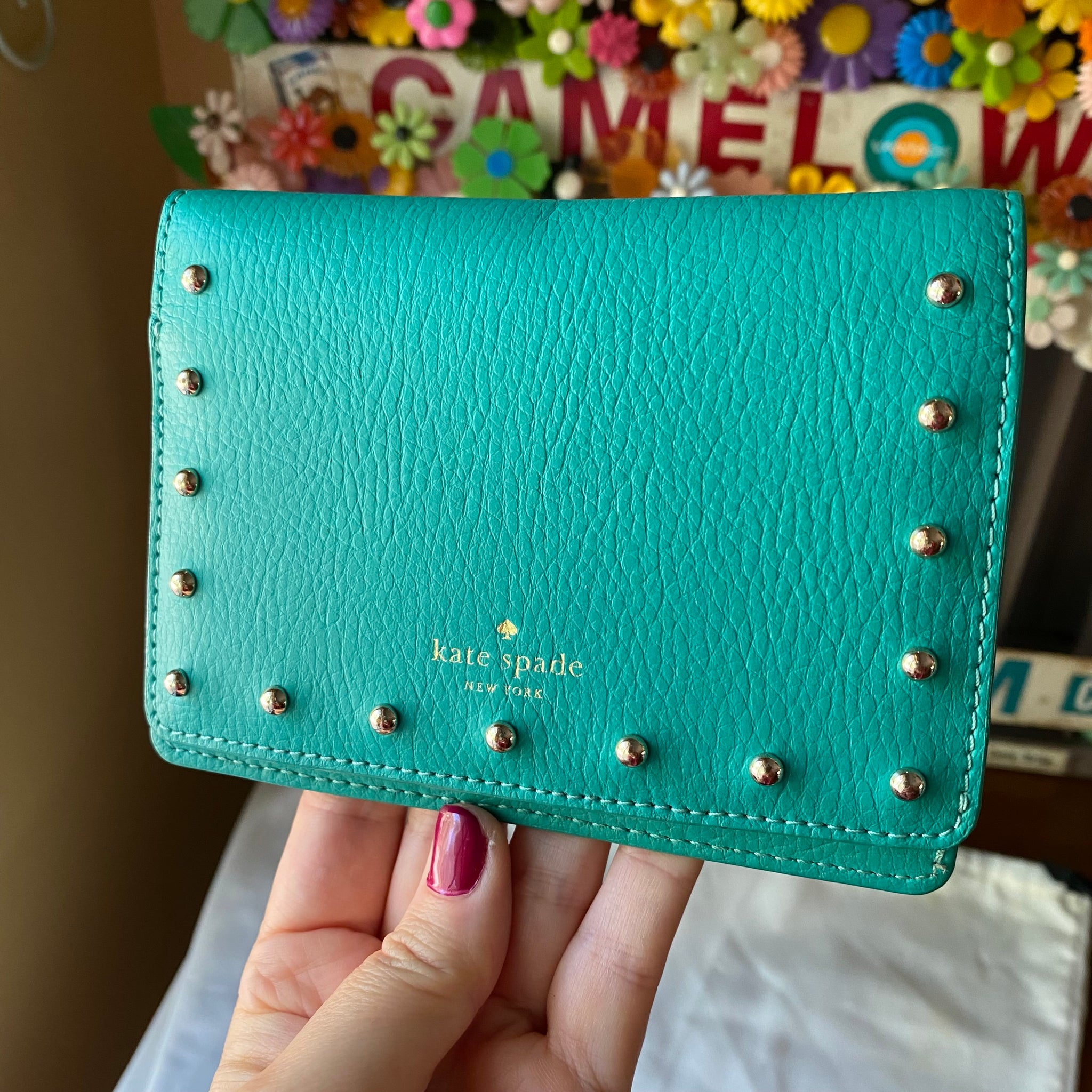 Kate Spade teal green, gold stud Romily handbag and wallet!