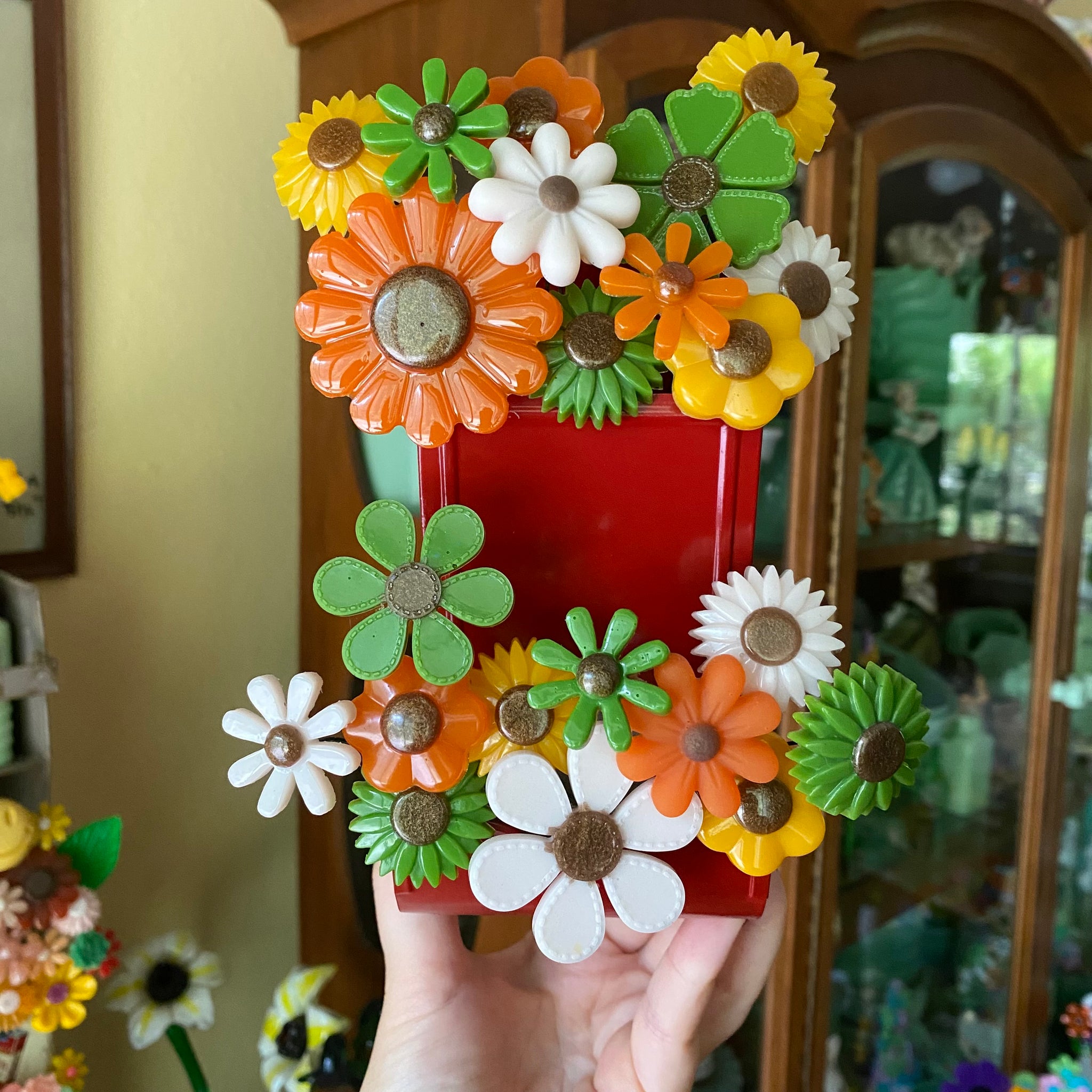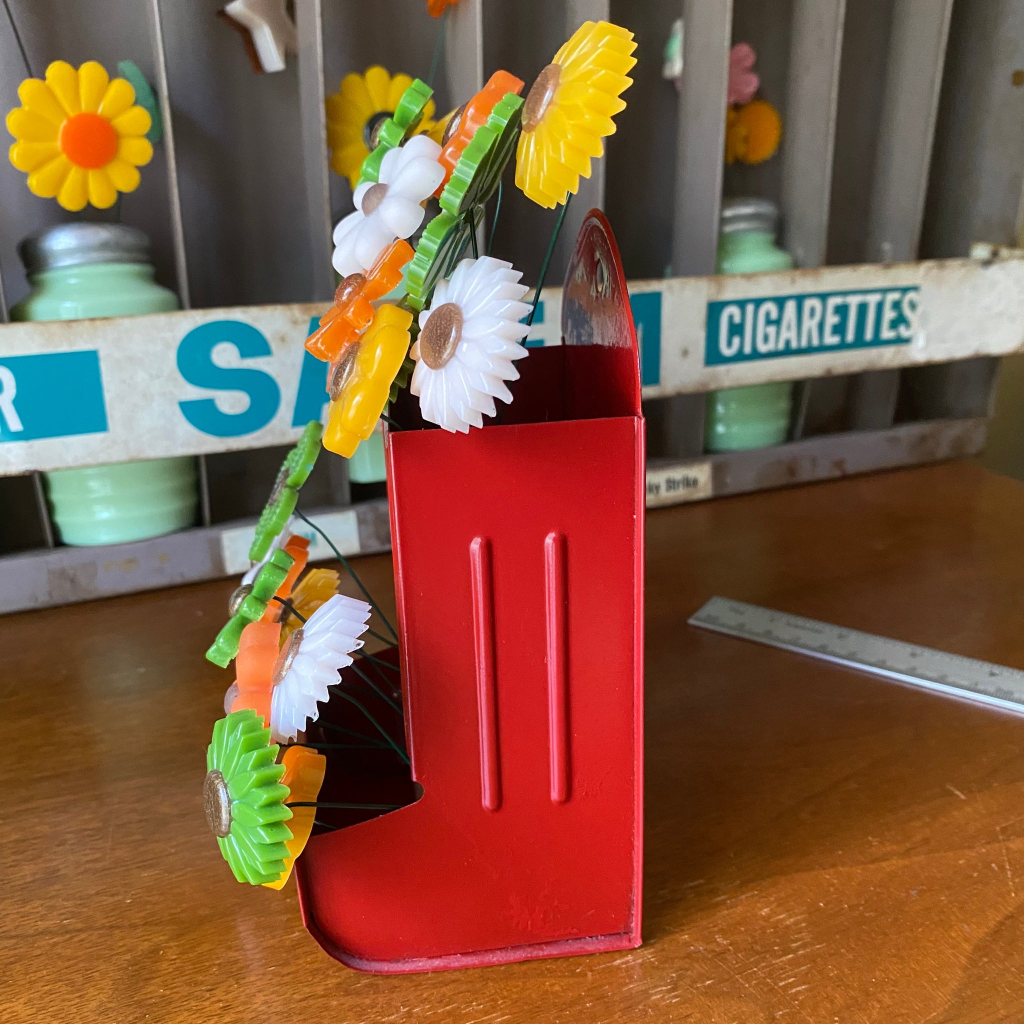 This red match box holder can sit tabletop or hang on the wall!