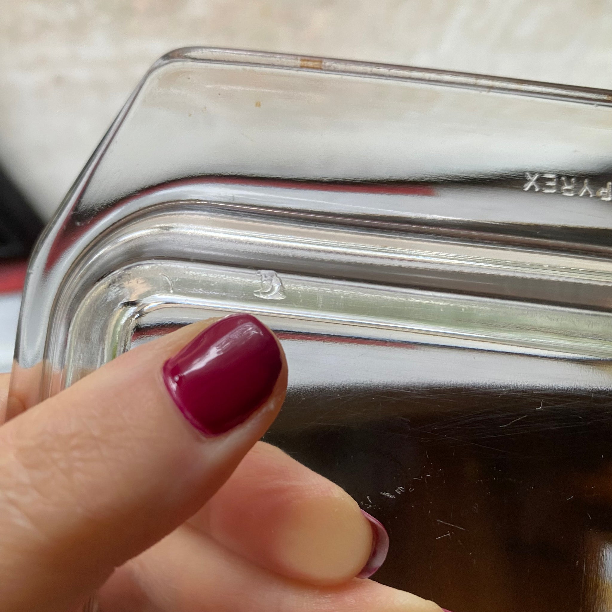 The glass lid has minimal marks from storage and one small flea bite on the top