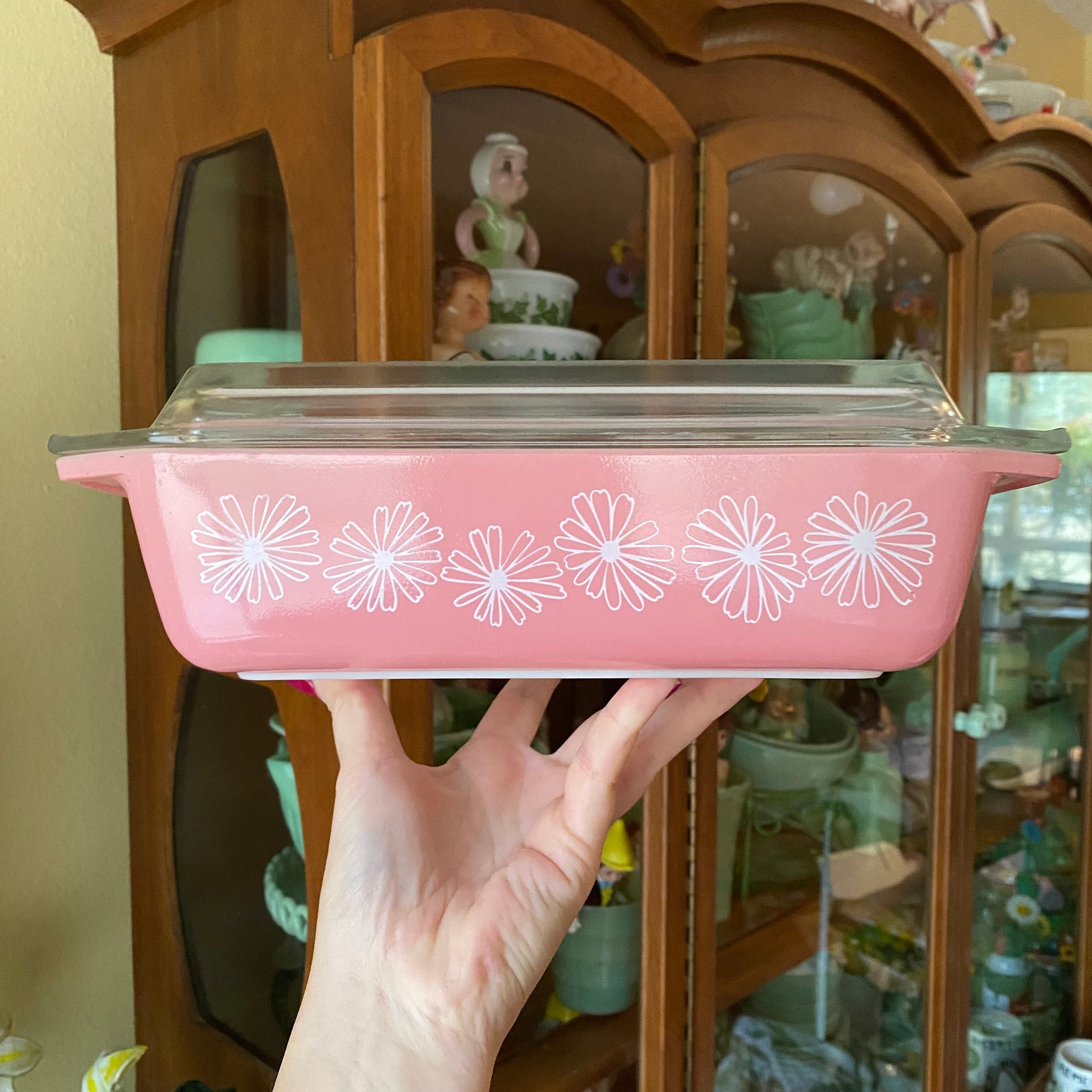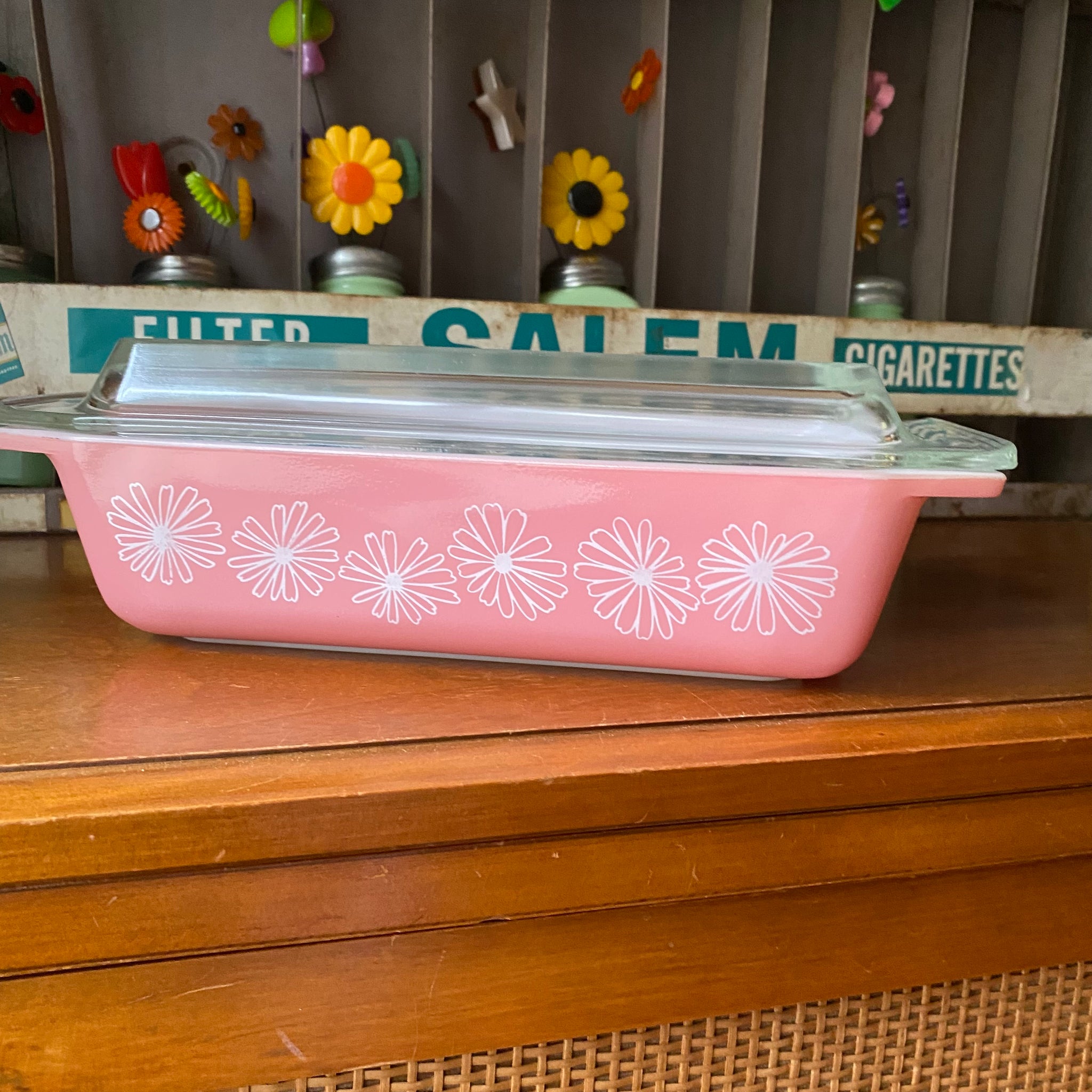 Pyrex JAJ pink daisy, deep space saver 575 dish with lid!
