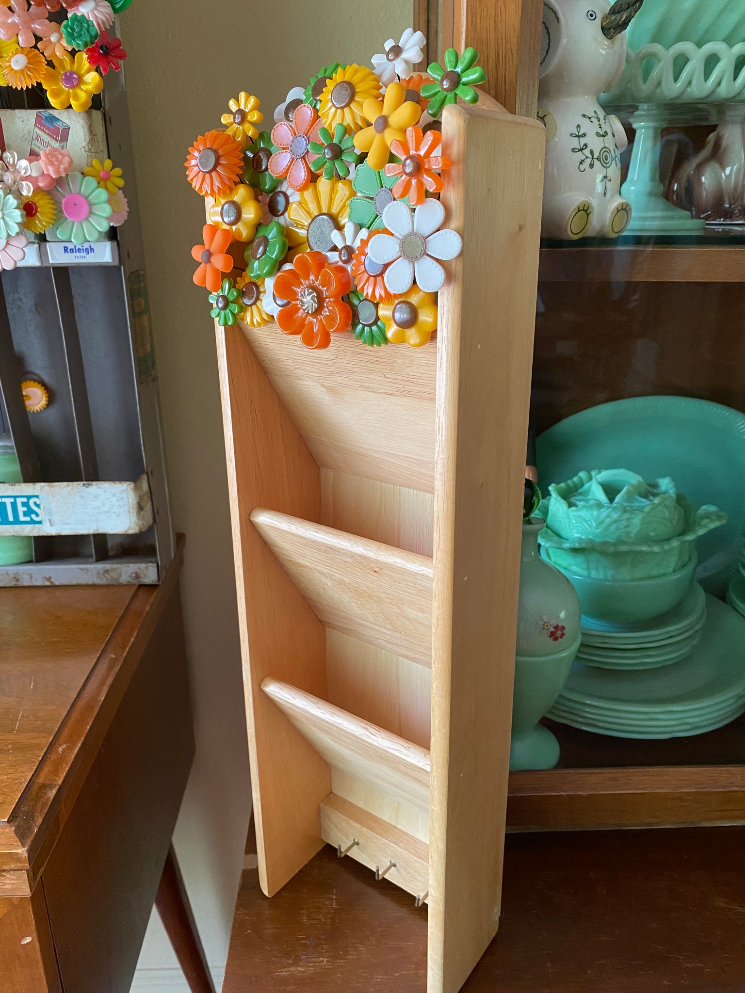 Wood, file/mail sorter with flowers!